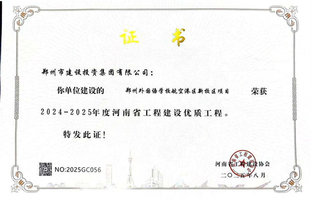 近日,由集團公司代建的鄭州外國語學(xué)校航空港區(qū)新校區(qū)項目榮獲2024-2025年度河南省工程建設(shè)優(yōu)質(zhì)工程榮譽。